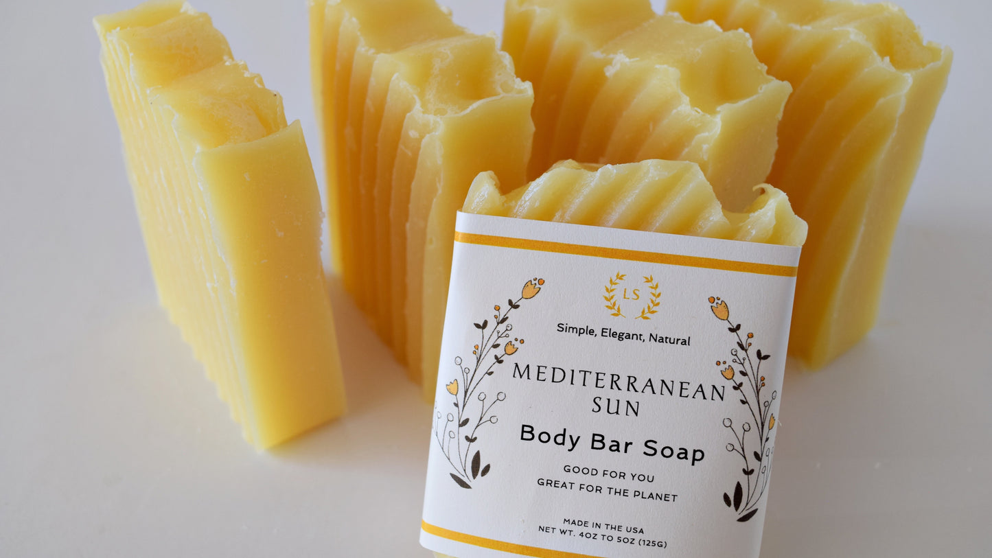 Handcrafted with pure, natural oils, this soap offers a calming, fresh, and natural aroma. Our Mediterranean soap body bars are a rustic, handcrafted, vegan, eco-friendly, and all-natural indulgence. Treat yourself to the essence of a Mediterranean orchard.